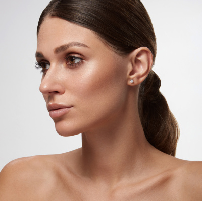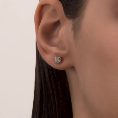 Серьги с 2 бриллиантами выращенными, 1.04 карат, огранка круг 57 граней, цвет 4, чистота 6, тип огранки А; Белое золото 585 пробы.