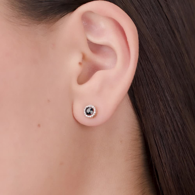 Серьги с 32 бриллиантами природными, 0.1 карат, огранка круг 17 граней, цвет 2, чистота 2, тип огранки А; 2 сапфирами природными, 0.55 карат, цвет 2, чистота 2, тип огранки В; Розовое золото 585 пробы.