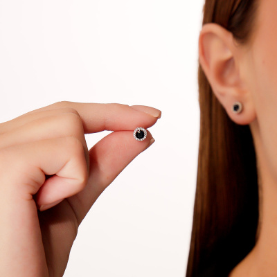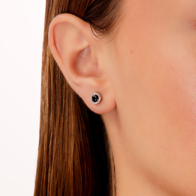 Серьги с 32 бриллиантами природными, 0.1 карат, огранка круг 17 граней, цвет 2, чистота 2, тип огранки А; 2 сапфирами природными, 0.58 карат, цвет 2, чистота 2, тип огранки В; Белое золото 585 пробы.