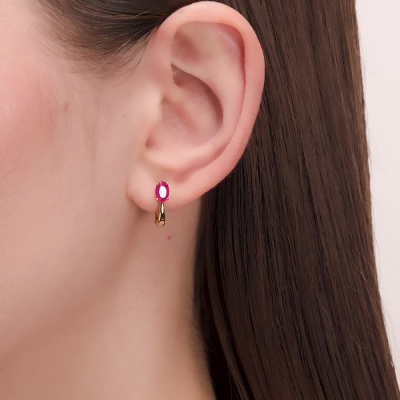 Серьги с 2 рубинами природными, 1.1 карат, цвет 2, чистота 2, тип огранки Б; Желтое золото 585 пробы.