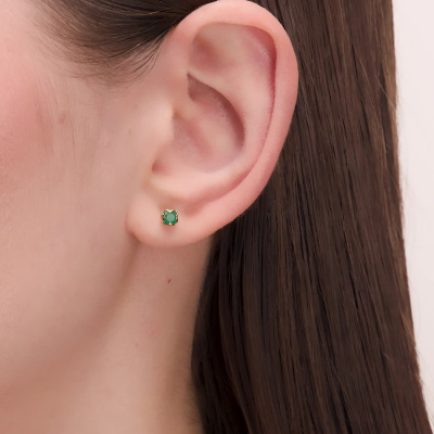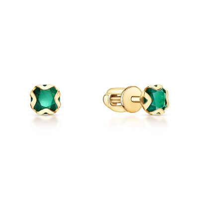 Серьги с 2 изумрудами природными, 0.51 карат, цвет 3, чистота 3, тип огранки В; Желтое золото 585 пробы.
