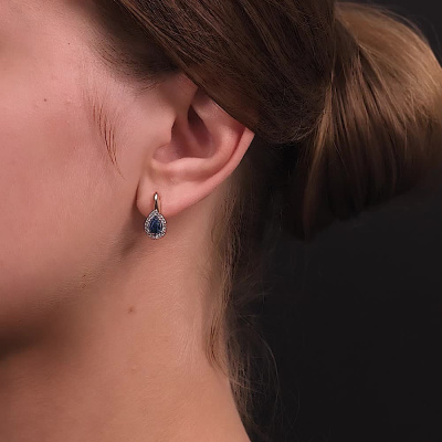 Золотые серьги с бриллиантами природными и сапфирами природными