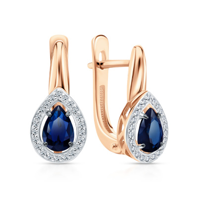 Серьги с 44 бриллиантами природными, 0.12 карат, огранка круг 17 граней, цвет 2, чистота 3, тип огранки А; 2 сапфирами природными, 0.87 карат, цвет 2, чистота 2, тип огранки Б; Розовое золото 585 пробы.