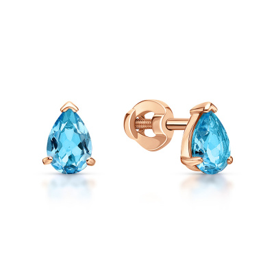 Серьги с 2 топазами свисс природными, 0.87 карат; Розовое золото 585 пробы.