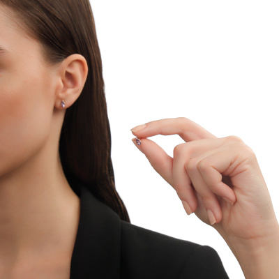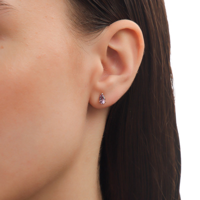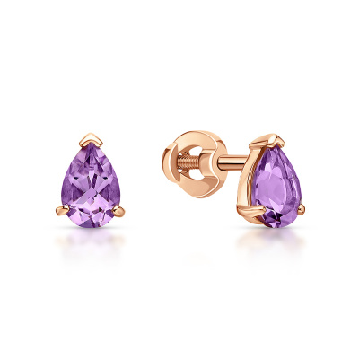 Серьги с 2 аметистами природными, 0.7 карат; Розовое золото 585 пробы.