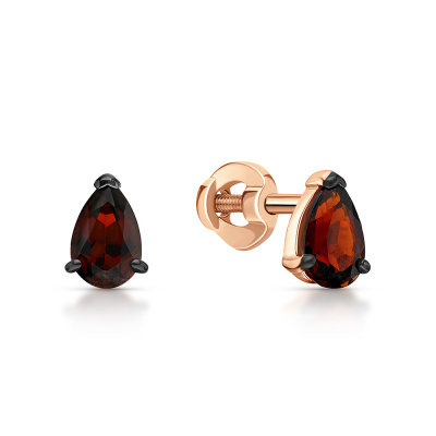 Серьги с 2 гранатами природными, 1 карат; Розовое золото 585 пробы.
