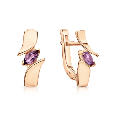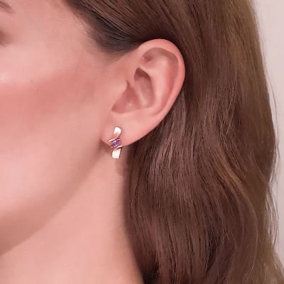 Серьги с 2 аметистами природными, 0.41 карат; Розовое золото 585 пробы.