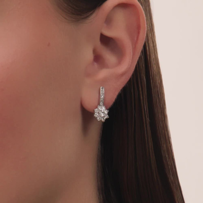 Серьги с 2 бриллиантами природными, 0.49 карат, огранка круг 57 граней, цвет 3, чистота 6, тип огранки А; 16 бриллиантами природными, 0.61 карат, огранка круг 57 граней, цвет 3, чистота 6, тип огранки А; 4 бриллиантами природными, 0.05 карат, огранка круг 57 граней, цвет 3, чистота 6, тип огранки А; 2 бриллиантами природными, 0.02 карат, огранка круг 57 граней, цвет 3, чистота 6, тип огранки А; 2 бриллиантами природными, 0.01 карат, огранка круг 57 граней, цвет 3, чистота 6, тип огранки А; 4 бриллиантами природными, 0.02 карат, огранка круг 17 граней, цвет 2, чистота 2, тип огранки А; Белое золото 585 пробы.