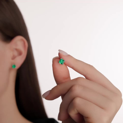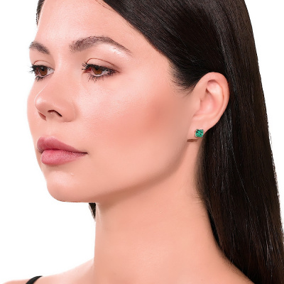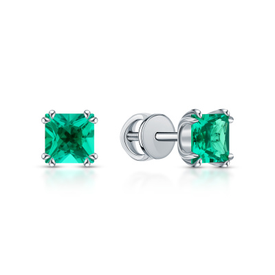 Серьги с 2 изумрудами выращенными Колумбия, 1.85 карат; Белое золото 585 пробы.