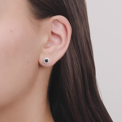 Серьги с 16 бриллиантами природными, 0.11 карат, огранка круг 57 граней, цвет 3, чистота 6, тип огранки А; 2 сапфирами природными, 0.55 карат, цвет 2, чистота 2, тип огранки В; Розовое золото 585 пробы.