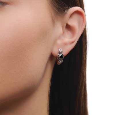 Серьги с 4 бриллиантами природными, 0.04 карат, огранка круг 57 граней, цвет 3, чистота 6, тип огранки А; 2 сапфирами природными, 0.55 карат, цвет 2, чистота 2, тип огранки В; Розовое золото 585 пробы.