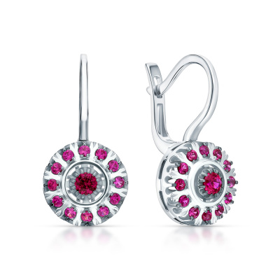 Серьги с 2 рубинами синтетическими, 0.26 карат; 24 рубинами синтетическими, 0.47 карат; Белое золото 585 пробы.
