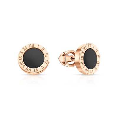 Серьги с 2 ониксами черными природными; Розовое золото 585 пробы.