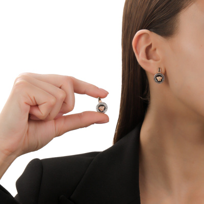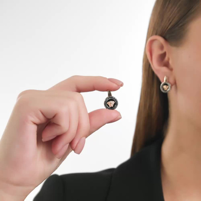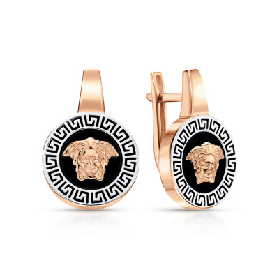 Серьги с 2 ониксами черными природными; Розовое золото 585 пробы.