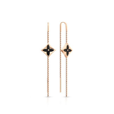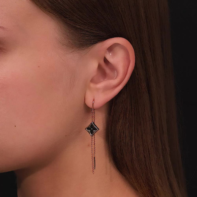 Серьги, вставка: оникс черный синтетический; Розовое золото 585 пробы.
