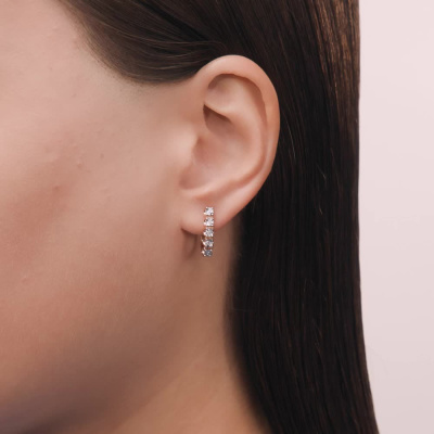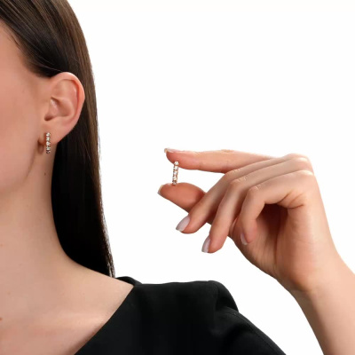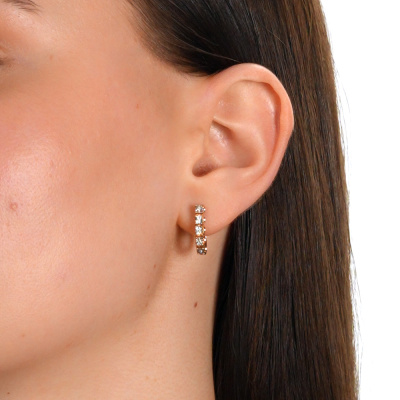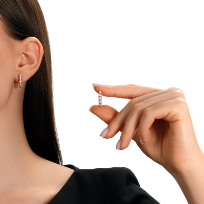 Серьги с 10 бриллиантами природными, 0.03 карат, огранка круг 57 граней, цвет 4, чистота 5, тип огранки А; Розовое и белое золото 585 пробы.