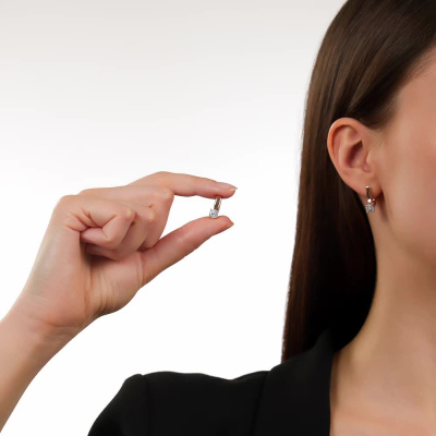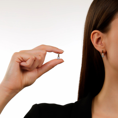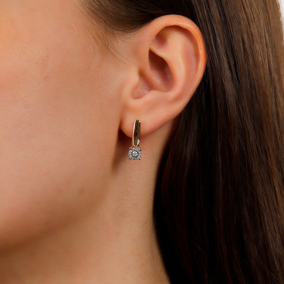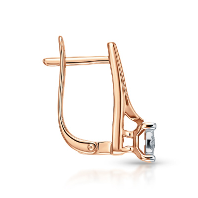 Серьги с 2 бриллиантами природными, 0.06 карат, огранка круг 57 граней, цвет 4, чистота 5, тип огранки А; 24 бриллиантами природными, 0.07 карат, огранка круг 17 граней, цвет 2, чистота 2, тип огранки А; Розовое и белое золото 585 пробы.