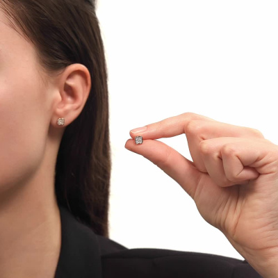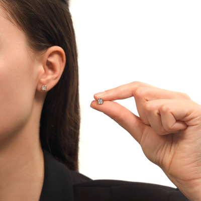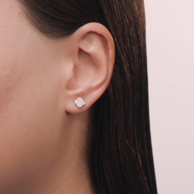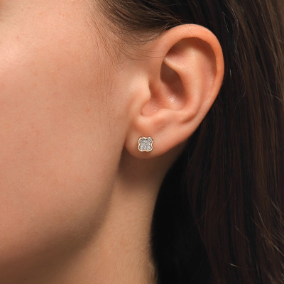 Серьги с 16 бриллиантами природными, 0.12 карат, огранка круг 57 граней, цвет 3, чистота 6; Розовое золото 585 пробы.