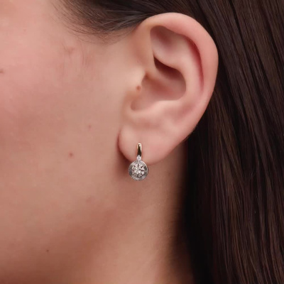 Серьги с 2 бриллиантами природными, 0.02 карат, огранка круг 57 граней, цвет 3, чистота 6; 2 бриллиантами природными, 0.01 карат, огранка круг 57 граней, цвет 3, чистота 6; 16 бриллиантами природными, 0.06 карат, огранка круг 17 граней, цвет 2, чистота 2; Розовое и белое золото 585 пробы.