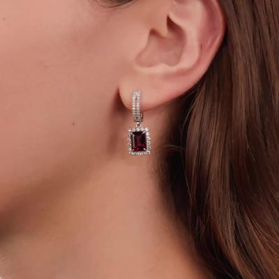 Эти серьги с гранатами – настоящее произведение ювелирного искусства, яркая классика драгоценных камней в оправе из белого золота, которое подчеркивает блеск бриллиантов и делает дизайн украшения современным. В центре каждой серьги находится крупный гранат насыщенного красного цвета и изумрудной огранки. Эта форма делает акцент на цвете вставки и придает ей строгую геометрическую красоту. Гранаты обрамлены бриллиантовым паве, словно сияющим ореолом. Верхняя часть серег украшена двумя дорожками бриллиантов, которые соединяются с подвеской, добавляя еще больше блеска и стилистической гармонии всему украшению. Гранат – покровитель страсти, источник силы и энергии. Он помогает владельцу обрести вдохновение и уверенность в себе, притягивает счастье в любви. Бриллианты усиливают магию граната. Они символизируют ясность мыслей, чистоту и вечную любовь. Эти серьги идеально подходят для тех, кто хочет выразить свою самодостаточность и желание жить насыщенно, ярко, романтично и в роскоши.