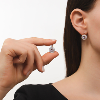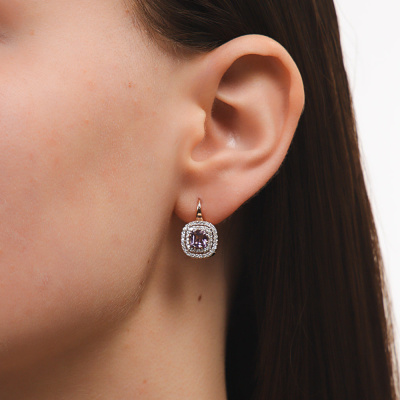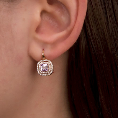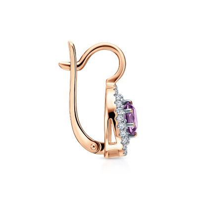 Серьги с 96 бриллиантами природными, 0.39 карат, огранка круг 17 граней, цвет 2, чистота 2, тип огранки А; 2 аметистами природными, 1.11 карат; Розовое золото 585 пробы.