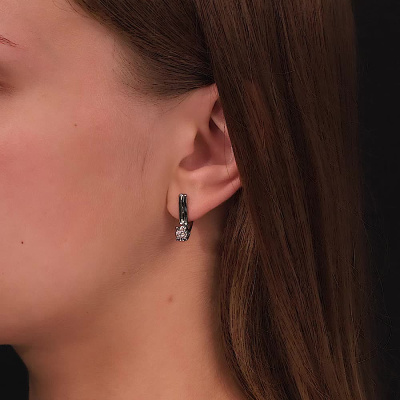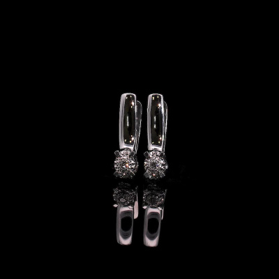 Серьги с 2 бриллиантами природными, 0.05 карат, огранка круг 57 граней, цвет 4, чистота 5, тип огранки А; Белое золото 585 пробы.