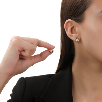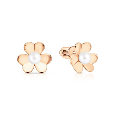 Серьги с 2 жемчугами пресноводными культ.белыми; Розовое золото 585 пробы.
