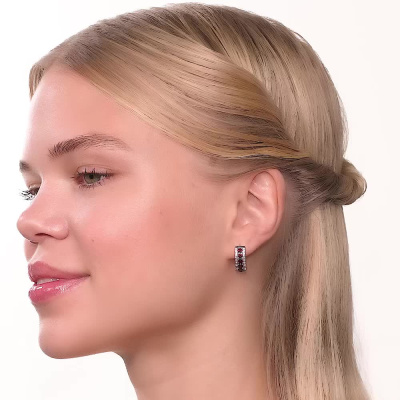 Серьги с 72 бриллиантами природными, 0.17 карат, огранка круг 17 граней, цвет 2, чистота 2, тип огранки А; 12 родолитами природными, 1.89 карат; Белое золото 585 пробы.