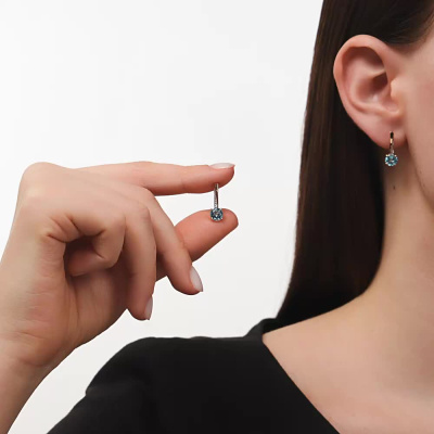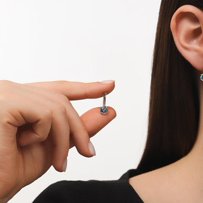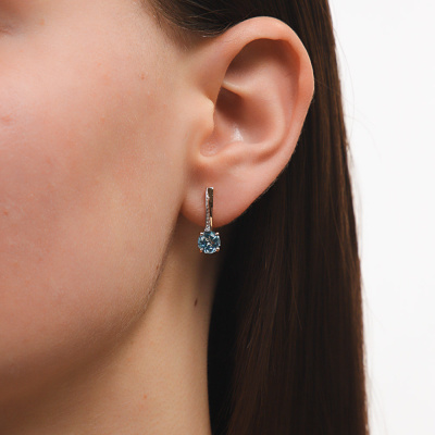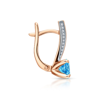 Серьги с 24 бриллиантами природными, 0.04 карат, огранка круг 17 граней, цвет 2, чистота 2, тип огранки А; 2 топазами свисс природными, 1.76 карат; Розовое золото 585 пробы.