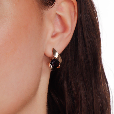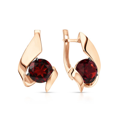 Золотые серьги с гранатами природными