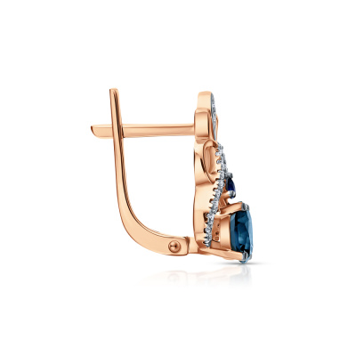 Серьги с 40 бриллиантами природными, 0.07 карат, огранка круг 17 граней, цвет 2, чистота 2, тип огранки Б; 2 сапфирами природными, 0.79 карат, цвет 2, чистота 2, тип огранки Б; 2 сапфирами природными, 0.05 карат, цвет 2, чистота 2, тип огранки В; Розовое золото 585 пробы.