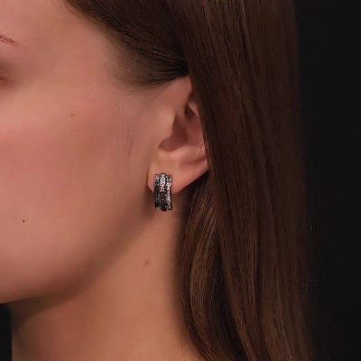 Золотые серьги с бриллиантами и бриллиантами чёрными природными