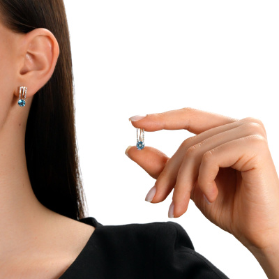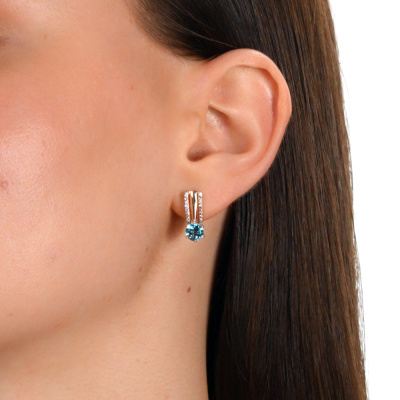 Серьги с 36 бриллиантами природными, 0.15 карат, огранка круг 17 граней, цвет 2, чистота 2, тип огранки А; 2 топазами свисс природными, 2.22 карат; Розовое золото 585 пробы.