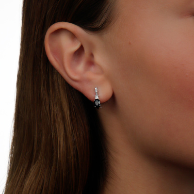 Серьги с 2 бриллиантами природными, 0.1 карат, огранка принцесса 65 граней, цвет 3, чистота 6; 4 бриллиантами природными, 0.03 карат, огранка круг 57 граней, цвет 3, чистота 6; 4 бриллиантами природными, 0.01 карат, огранка круг 17 граней, цвет 2, чистота 3; 2 сапфирами природными, 1.4 карат, цвет 3, чистота 4; Белое золото 585 пробы.