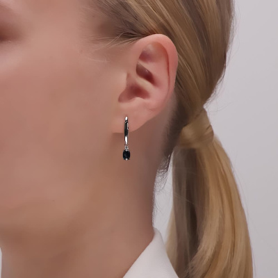 Серьги с 2 бриллиантами природными, 0.05 карат, огранка круг 57 граней, цвет 3, чистота 6, тип огранки А; 2 сапфирами природными, 1.22 карат, цвет 3, чистота 4, тип огранки Б; Белое золото 585 пробы.