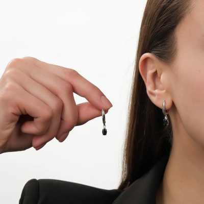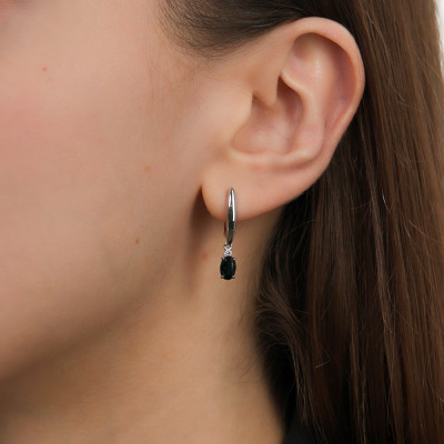 Серьги с 2 бриллиантами природными, 0.05 карат, огранка круг 57 граней, цвет 3, чистота 6; 2 сапфирами природными, 1.22 карат, цвет 3, чистота 4; Белое золото 585 пробы.