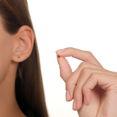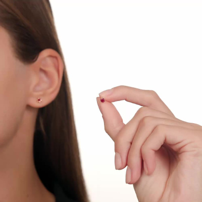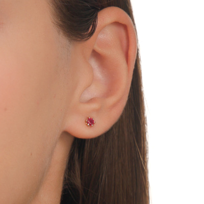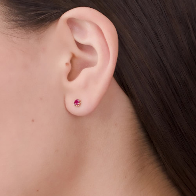 Серьги с 2 рубинами природными, 0.45 карат, цвет 3, чистота 4; Желтое золото 585 пробы.