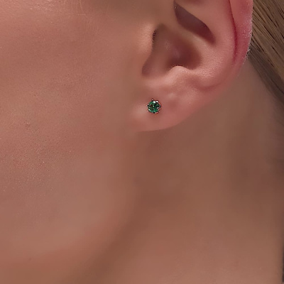 Серьги с 2 изумрудами природными, 0.31 карат, цвет 4, чистота 3, тип огранки В; Розовое золото 585 пробы.