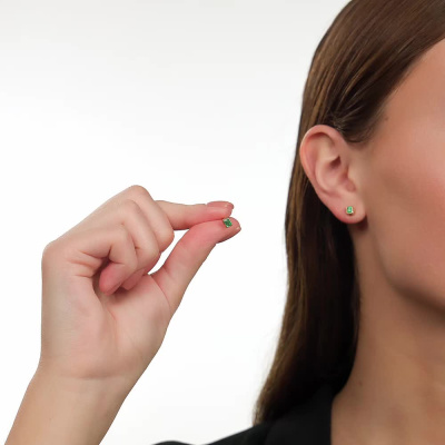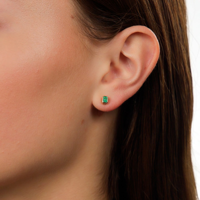 Серьги с 2 изумрудами природными, 0.41 карат, цвет 4, чистота 3; Желтое золото 585 пробы.