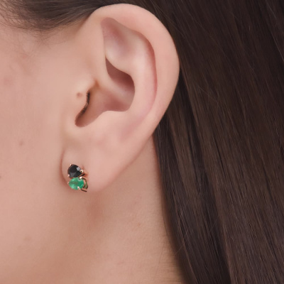 Серьги с 2 сапфирами природными, 1.02 карат, цвет 3, чистота 4; 2 изумрудами природными, 0.71 карат, цвет 4, чистота 3; Розовое золото 585 пробы.