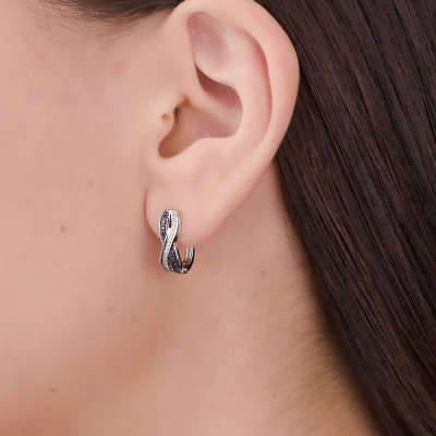 Серьги с 30 бриллиантами природными, 0.07 карат, огранка круг 17 граней, цвет 2, чистота 3, тип огранки Б; 16 сапфирами природными, 0.17 карат, цвет 3, чистота 4, тип огранки В; Белое золото 585 пробы.
