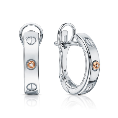 Серьги с 2 бриллиантами природными, 0.009 карат, огранка круг 17 граней, цвет 2, чистота 3, тип огранки Б; элементы из золота Au585, 0.009 карат; Серебро 925 пробы.