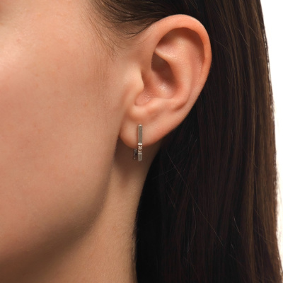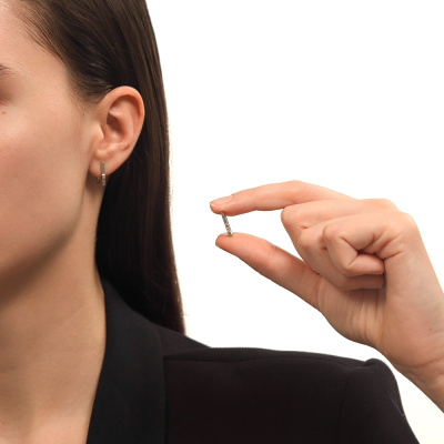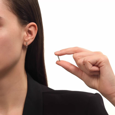 Серьги с 2 бриллиантами природными, 0.01 карат, огранка круг 17 граней, цвет 2, чистота 3, тип огранки Б; элементы из золота Au585, 0.01 карат; Серебро 925 пробы.