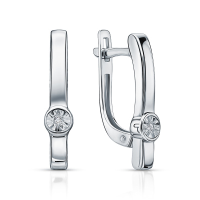 Серьги с 2 бриллиантами природными, 0.009 карат, огранка круг 17 граней, цвет 2, чистота 3, тип огранки Б; Серебро 925 пробы.