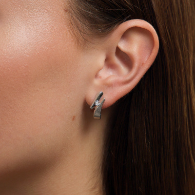 Серьги с 2 бриллиантами природными, 0.007 карат, огранка круг 17 граней, цвет 3, чистота 3, тип огранки Б; Серебро 925 пробы.