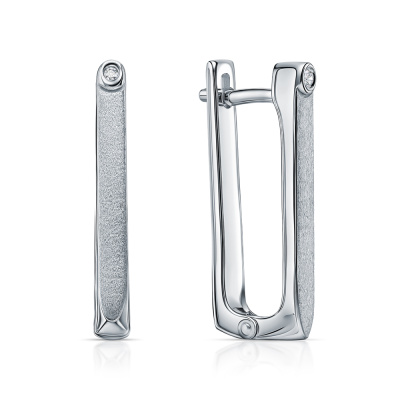 Серьги с 2 бриллиантами природными, 0.01 карат, огранка круг 17 граней, цвет 2, чистота 3, тип огранки А; Серебро 925 пробы.