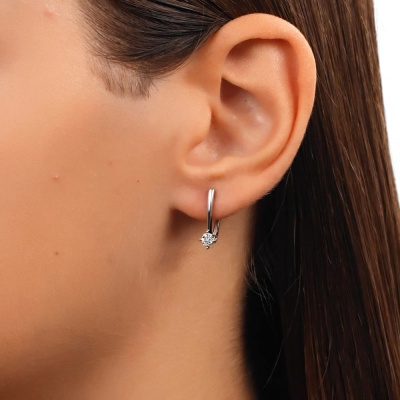 Серьги с 14 бриллиантами природными, 0.09 карат, огранка круг 57 граней, цвет 3, чистота 6, тип огранки А; Платина 950 пробы.