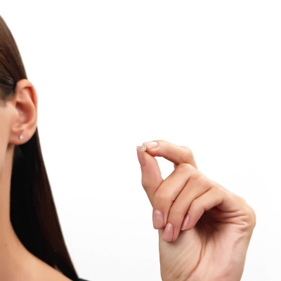 Серьги с 14 бриллиантами природными, 0.09 карат, огранка круг 57 граней, цвет 3, чистота 6, тип огранки А; Платина 950 пробы.