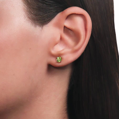 Золотые серьги с хризолитами природными