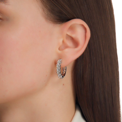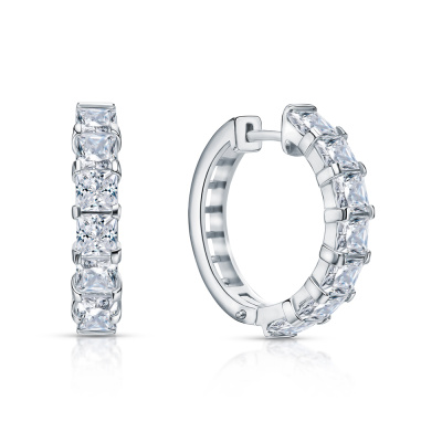 Серьги с 14 бриллиантами выращенными, 5.45 карат, огранка принцесса 65 граней, цвет 4, чистота 5, тип огранки А; Белое золото 585 пробы.